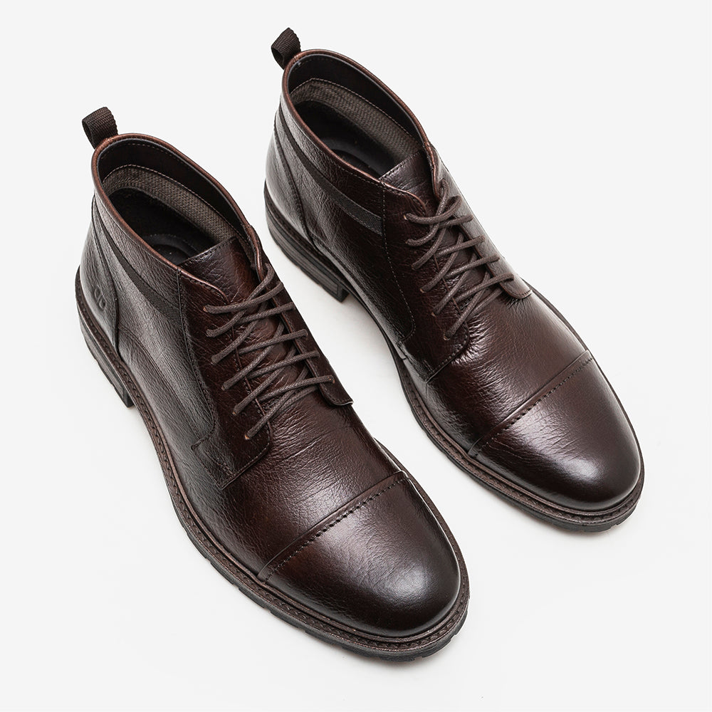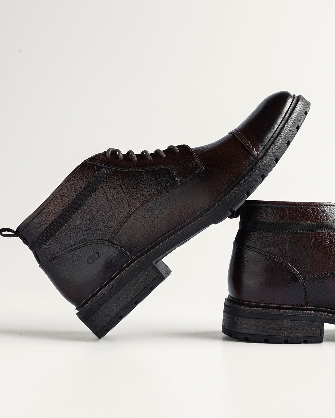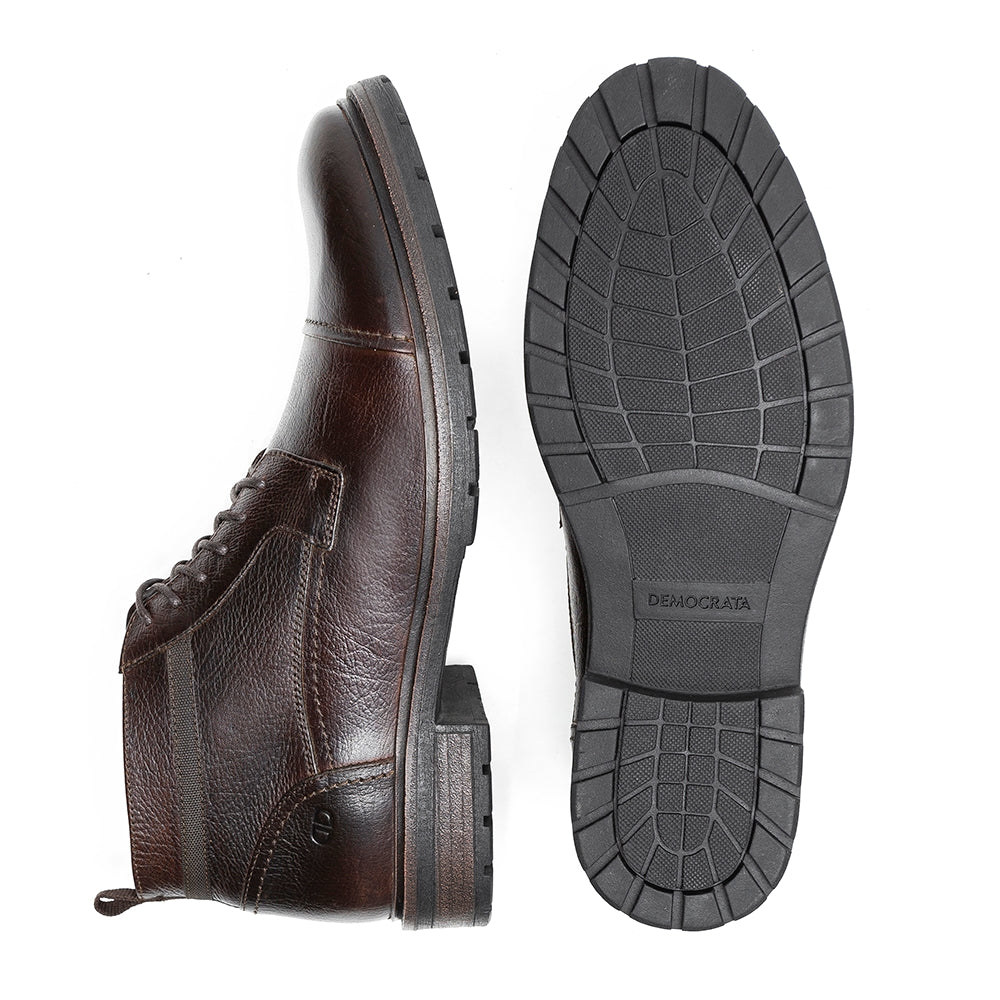 The DEMOCRATA MOSS DRESS BOOTS feature an authentic leather upper that ensures durability and a sophisticated appearance, perfect for formal or business settings. Their non-slip rubber outsole provides reliable traction and stability, enhancing safety and comfort during wear. These boots combine quality materials with practical design for an expert choice in men's footwear.