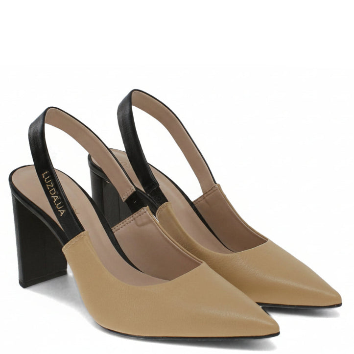 Crafted from supple Brazilian leather, the Luz da Lua Janel Stiletto is a refined slingback heel that bridges minimalist elegance with timeless sophistication. The sleek stiletto silhouette elongates the leg, while the secure slingback strap ensures all-day comfort without compromise. Available in rich jewel tones—warm Saara, creamy Frappe, and classic Preto—each pair reflects our commitment to premium materials and editorial luxury. Perfect for elevated occasions or polished everyday wear.