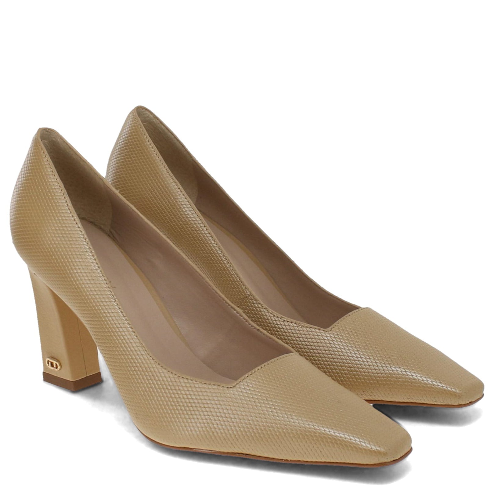 Elevate your style with the Luz da Lua Novina Stiletto, a sophisticated high heel crafted from quality leather in Brazil. This stunning shoe features a 3.5-inch block heel adorned with elegant gold embellishment, providing both glamour and stability. The cushioned insole ensures all-day comfort, making it perfect for any occasion where you want to make a statement.