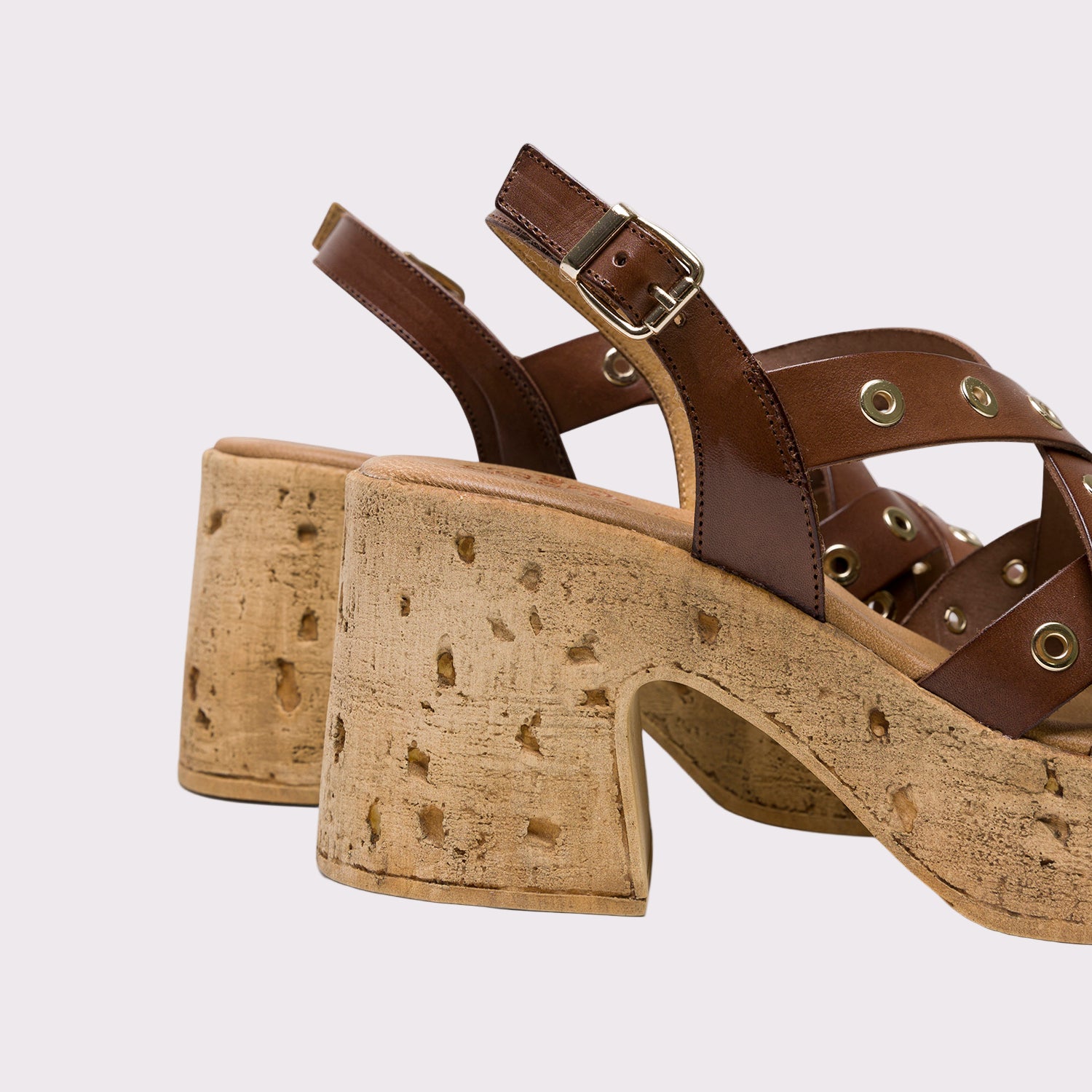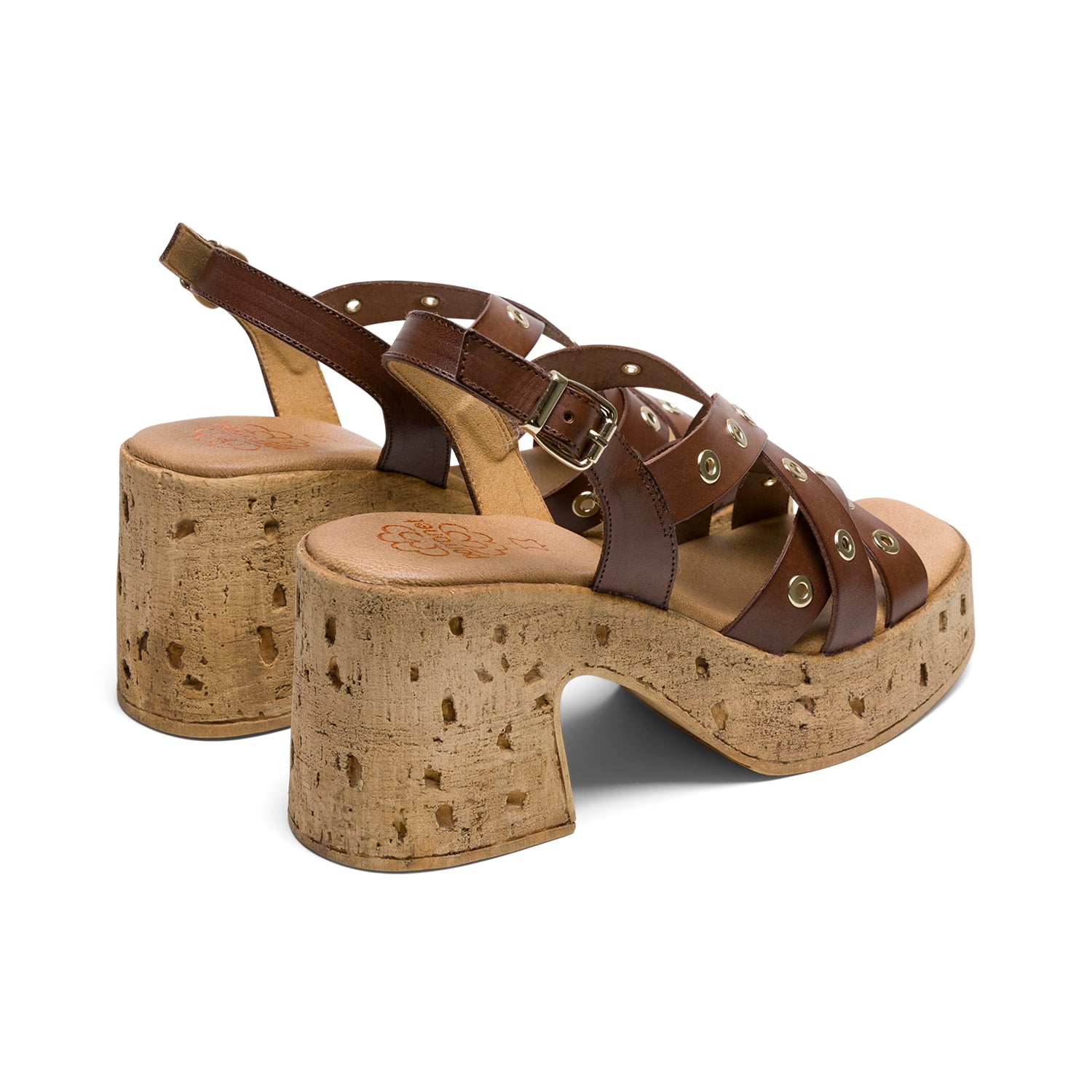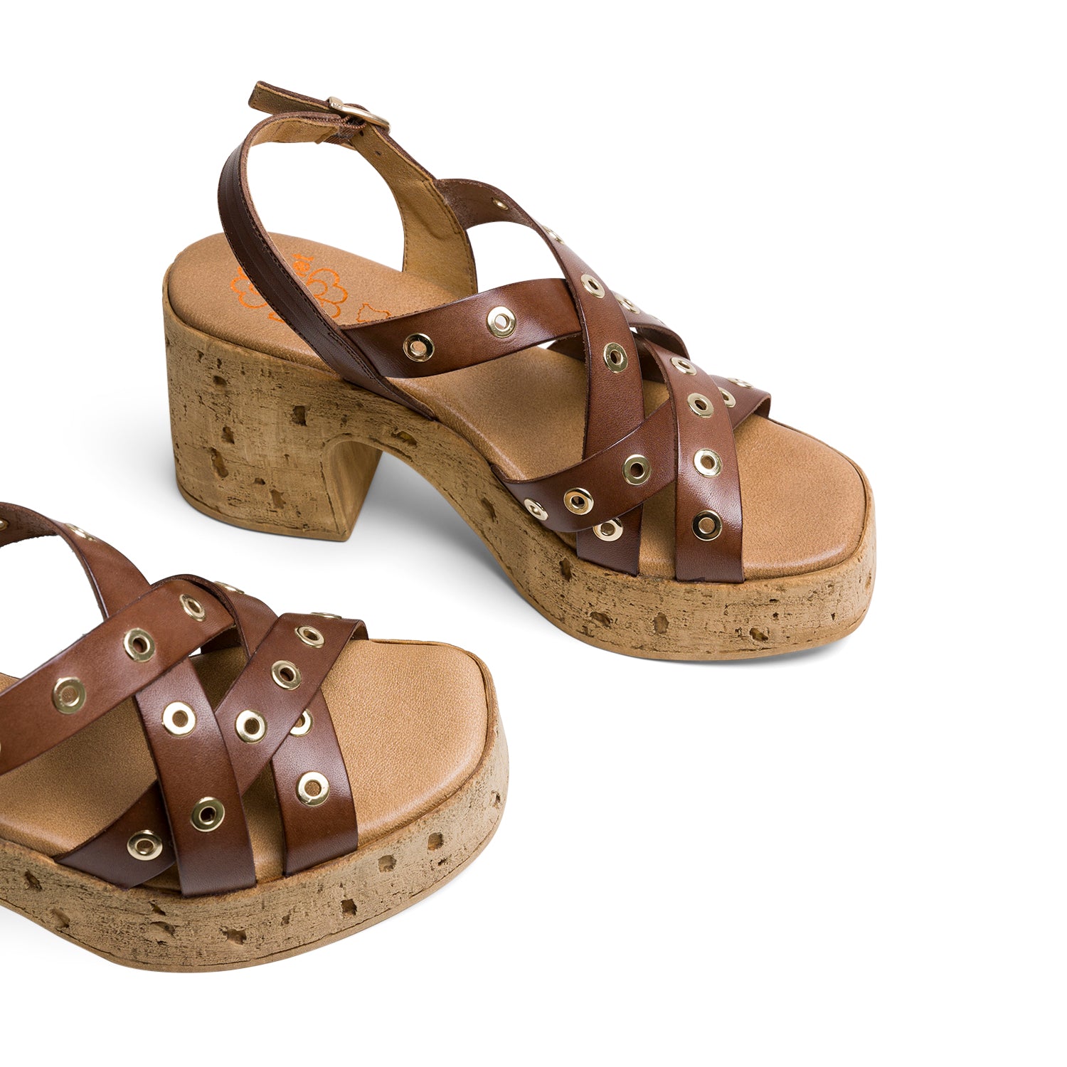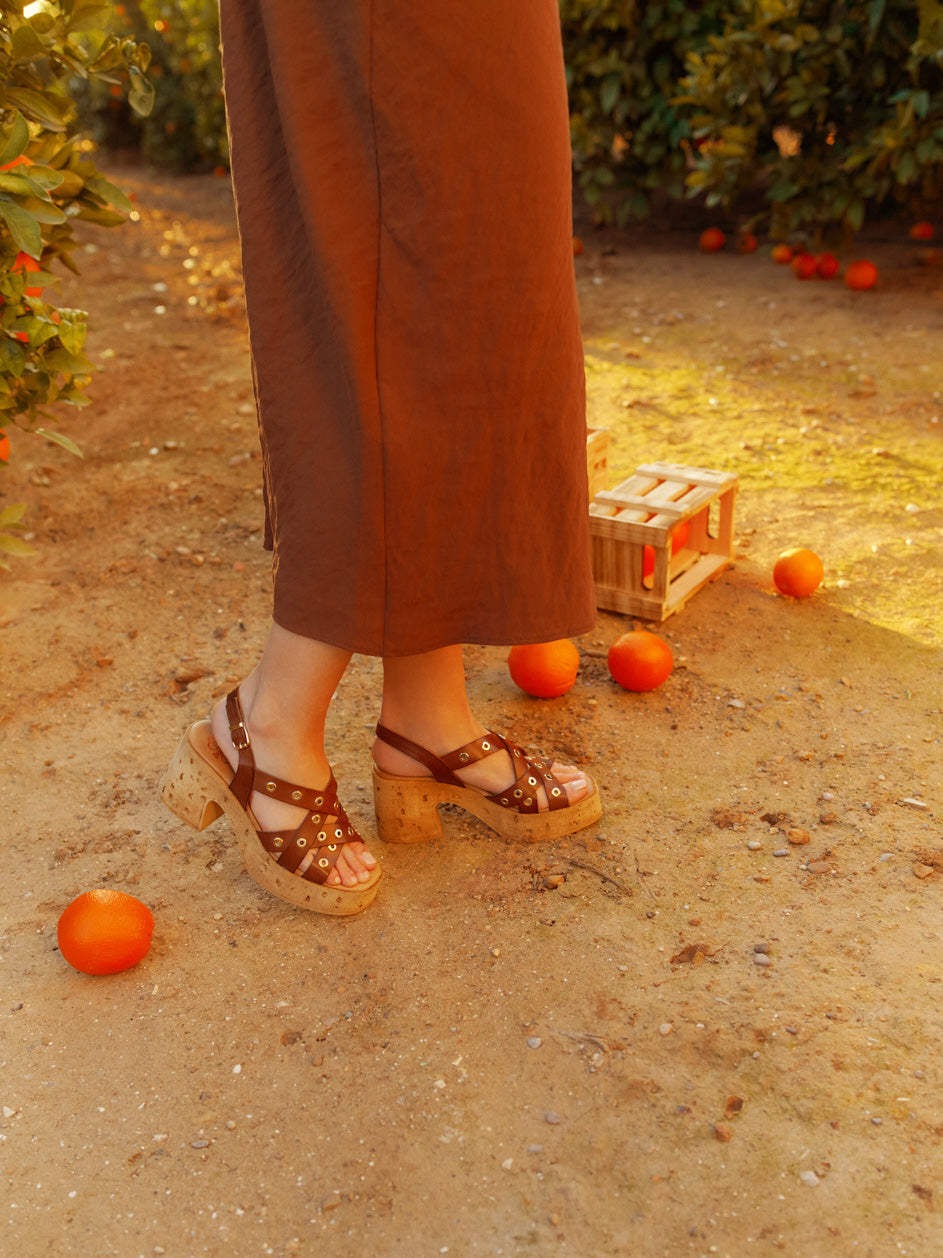 PORRONET CYRA HEELS combine bold design with comfort, featuring genuine leather straps secured by sleek metal rings. The adjustable ankle strap with buckle ensures a confident fit, while the lightweight cork platform elevates your look without weighing you down. Cushioned insoles provide lasting comfort, making these daring heels perfect for those who demand both style and ease. Proudly made in Spain, they bring a touch of fearless sophistication to every step.