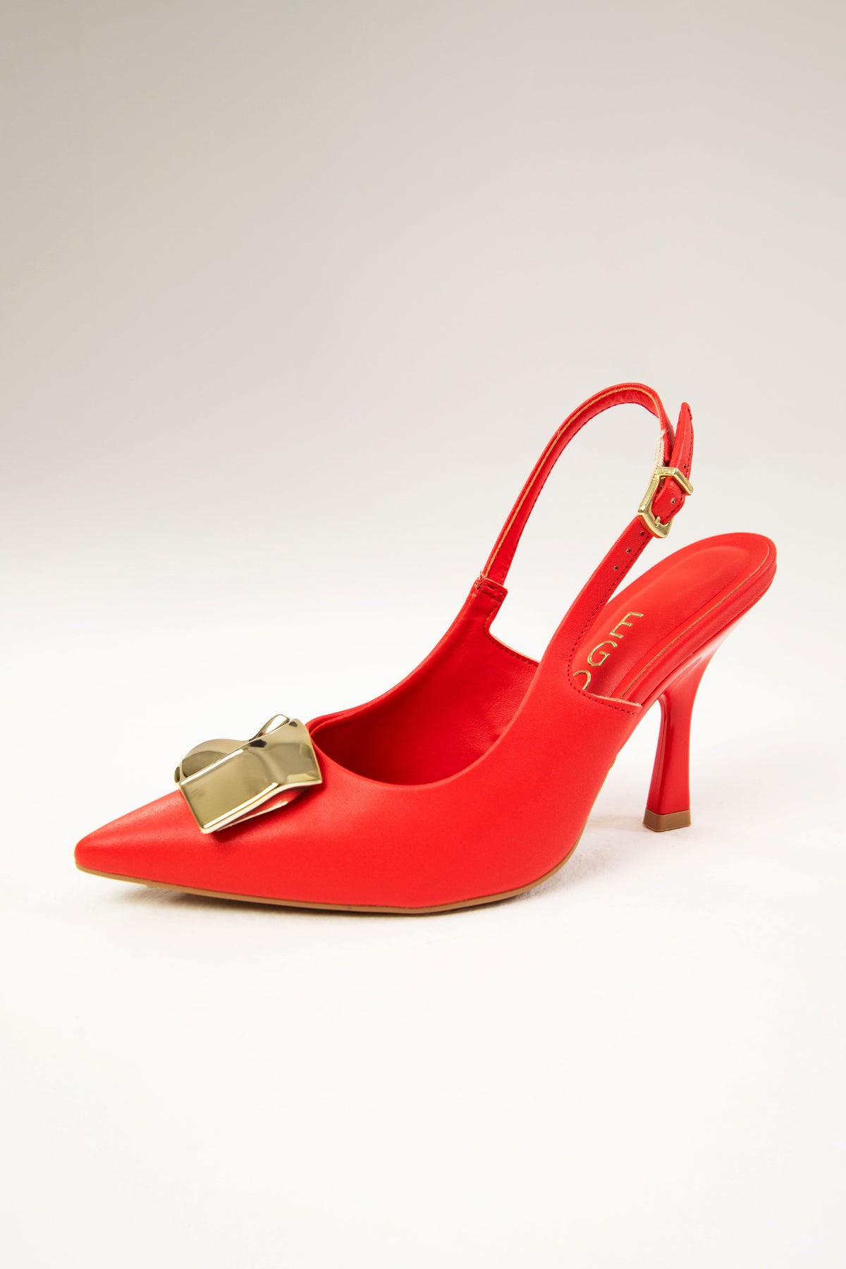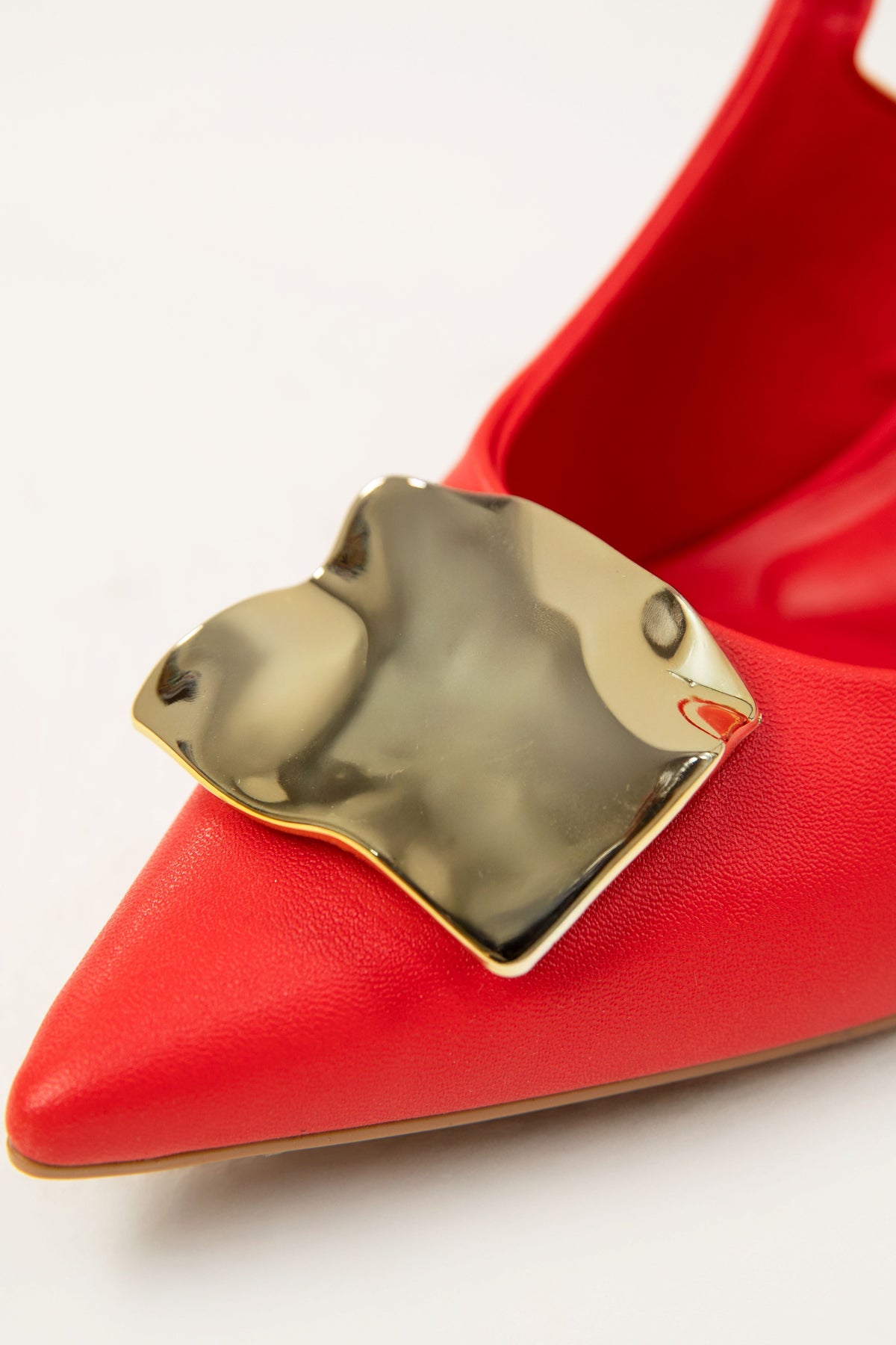 Elevate your style with this sophisticated slingback heel that seamlessly blends timeless elegance with modern comfort. Crafted from premium leather, this closed-toe silhouette features a luxurious gold-tone detail at the front that adds a touch of refined glamour to every step.