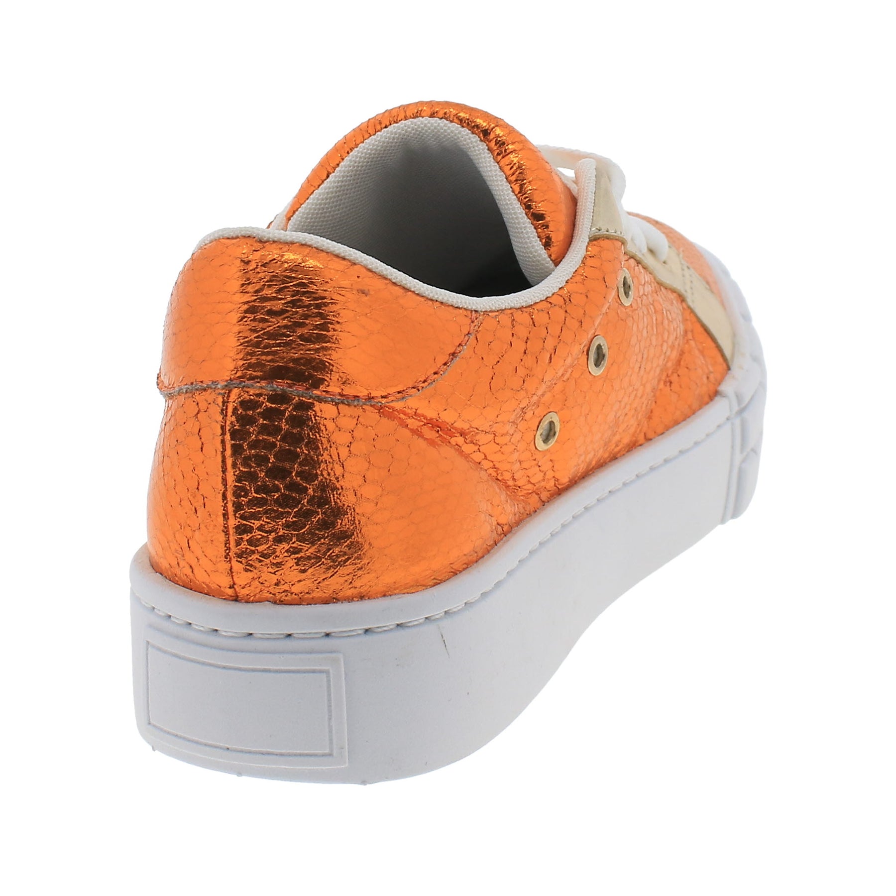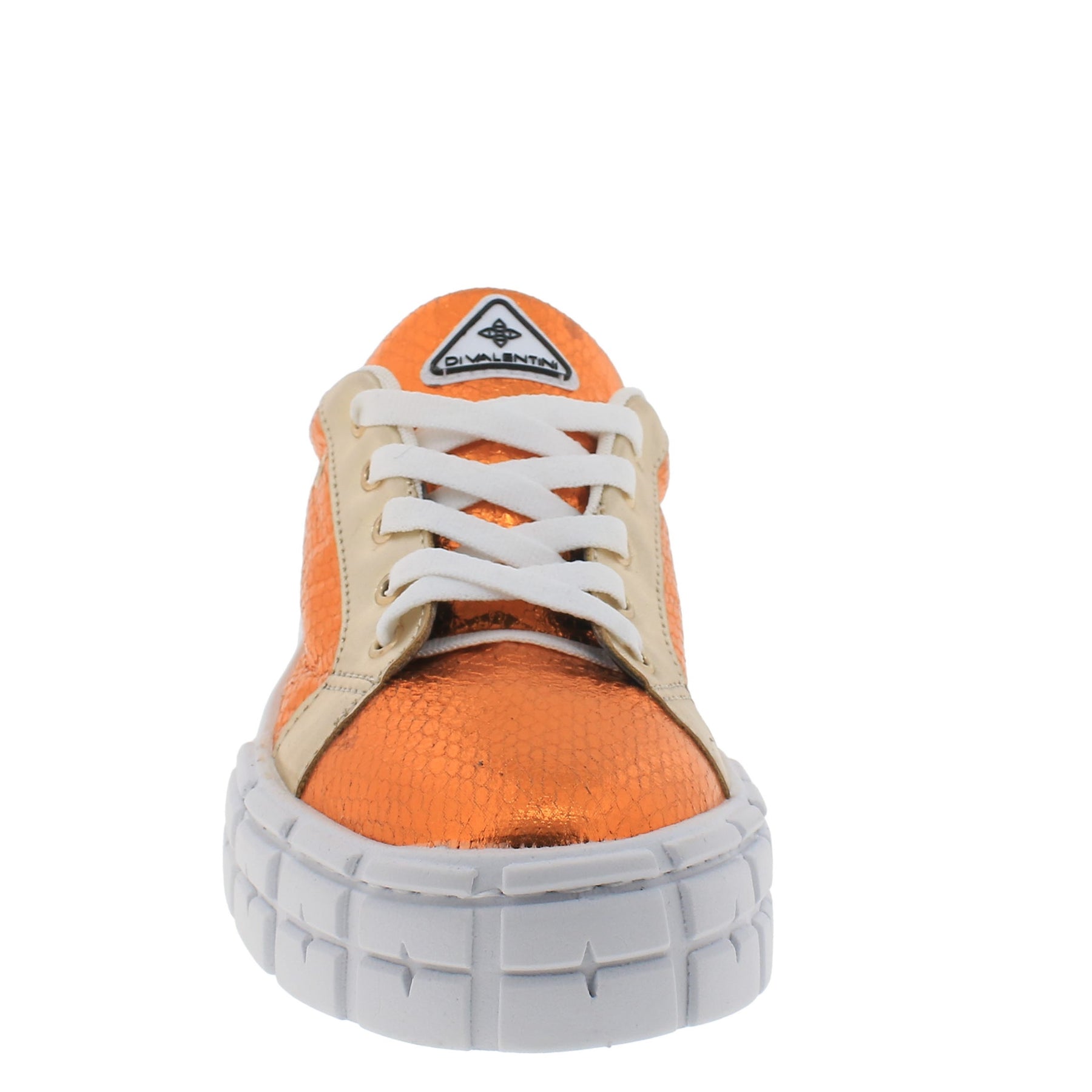 Fabulous Di Valentini casual platform sneakers featuring metallic faux snake leather upper with leather lining and lace closure.