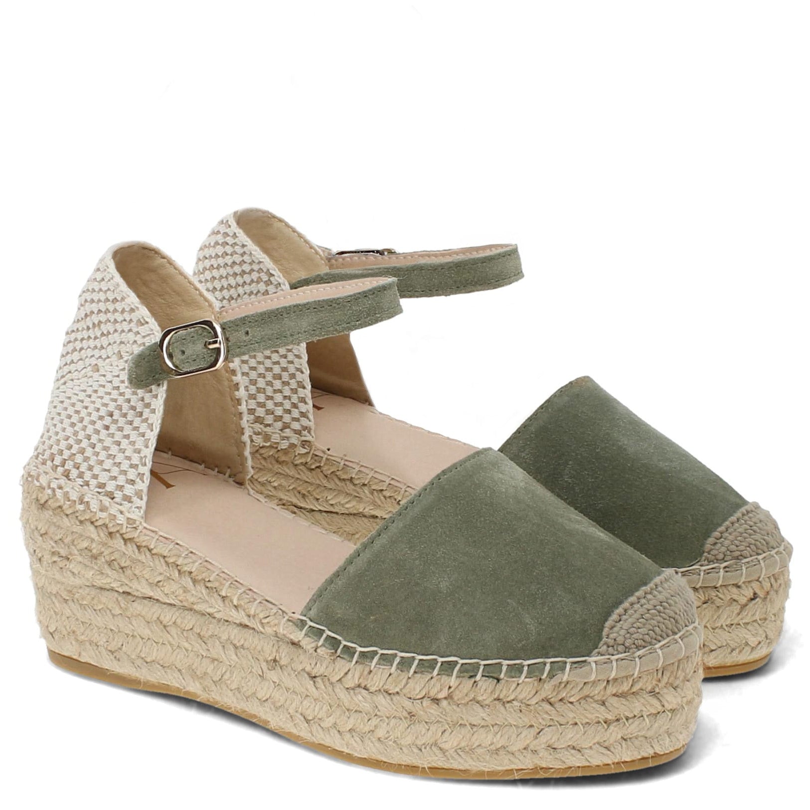 Handcrafted suede uppers paired with a textile heel notch create refined comfort and style. The jute-wrapped platform outsole delivers eco-conscious durability with authentic texture. An adjustable ankle belt with buckle provides secure fit and a distinctive design element. Proudly made in Spain, these platforms combine artisanal craftsmanship with contemporary flair.